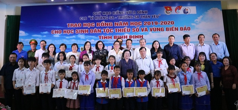 Web.ĐTN: Sáng 15/10, Ban Thường vụ Tỉnh đoàn, Sở Giáo dục và Đào tạo Bình Định phối hợp với Văn phòng đại diện phía Nam Quỹ học bổng Vừ A Dính, CLB “Vì Hoàng Sa - Trường Sa thân yêu” tổ chức Lễ trao tặng học bổng cho học sinh dân tộc thiểu số và vùng biển đảo tỉnh Bình Định năm học 2019 - 2020.
