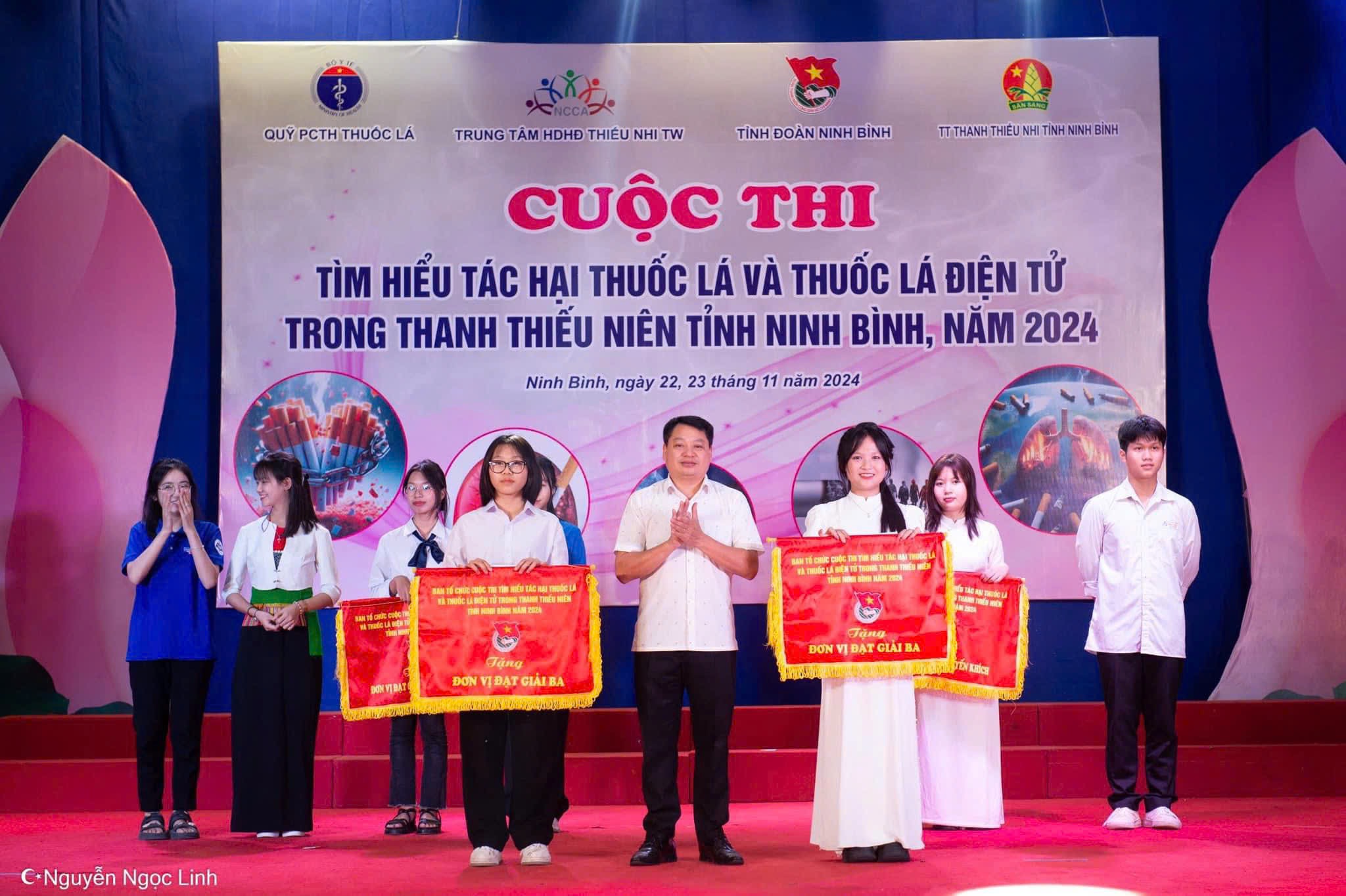 ĐTN: Ngày 22 và 23/11, Tỉnh đoàn Ninh Bình và Trung tâm thanh thiếu nhi tỉnh phối hợp với Trung tâm Hướng dẫn hoạt động thiếu nhi Trung ương, Quỹ phòng chống tác hại thuốc lá, Bộ Y tế tổ chức Cuộc thi “Tìm hiểu về tác hại của thuốc lá và thuốc lá điện tử trong thanh thiếu niên” tỉnh Ninh Bình tại trung tâm Thanh thiếu tỉnh.