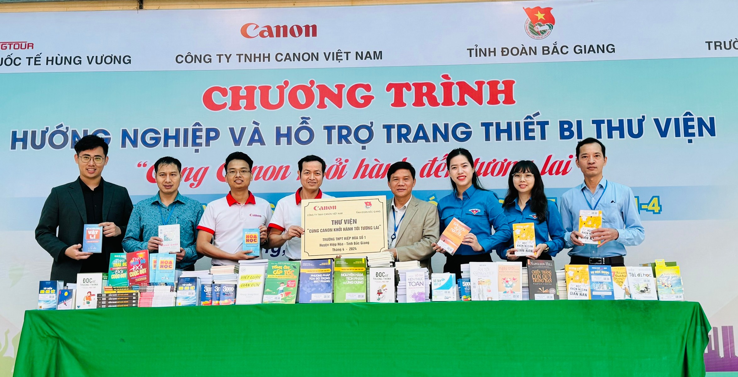 ĐTN: Sáng 08/4, tại Trường THPT Hiệp Hòa số 1 (Hiệp Hòa), Tỉnh đoàn Bắc Giang phối hợp với Công ty TNHH Canon Việt Nam tổ chức Chương trình Hướng nghiệp và hỗ trợ trang thiết bị thư viện “Cùng Canon khởi hành đến tương lai” cho học sinh bậc trung học phổ thông.