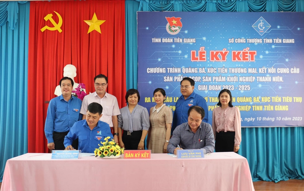 ĐTN: Sáng 10/10, Ban Thường vụ Tỉnh Đoàn Tiền Giang phối hợp với Lãnh đạo Sở Công Thương tổ chức Lễ ký kết Kế hoạch phối hợp Quảng bá, xúc tiến thương mại, kết nối cung cầu sản phẩm OCOP, sản phẩm khởi nghiệp thanh niên, giai đoạn 2023 - 2025.