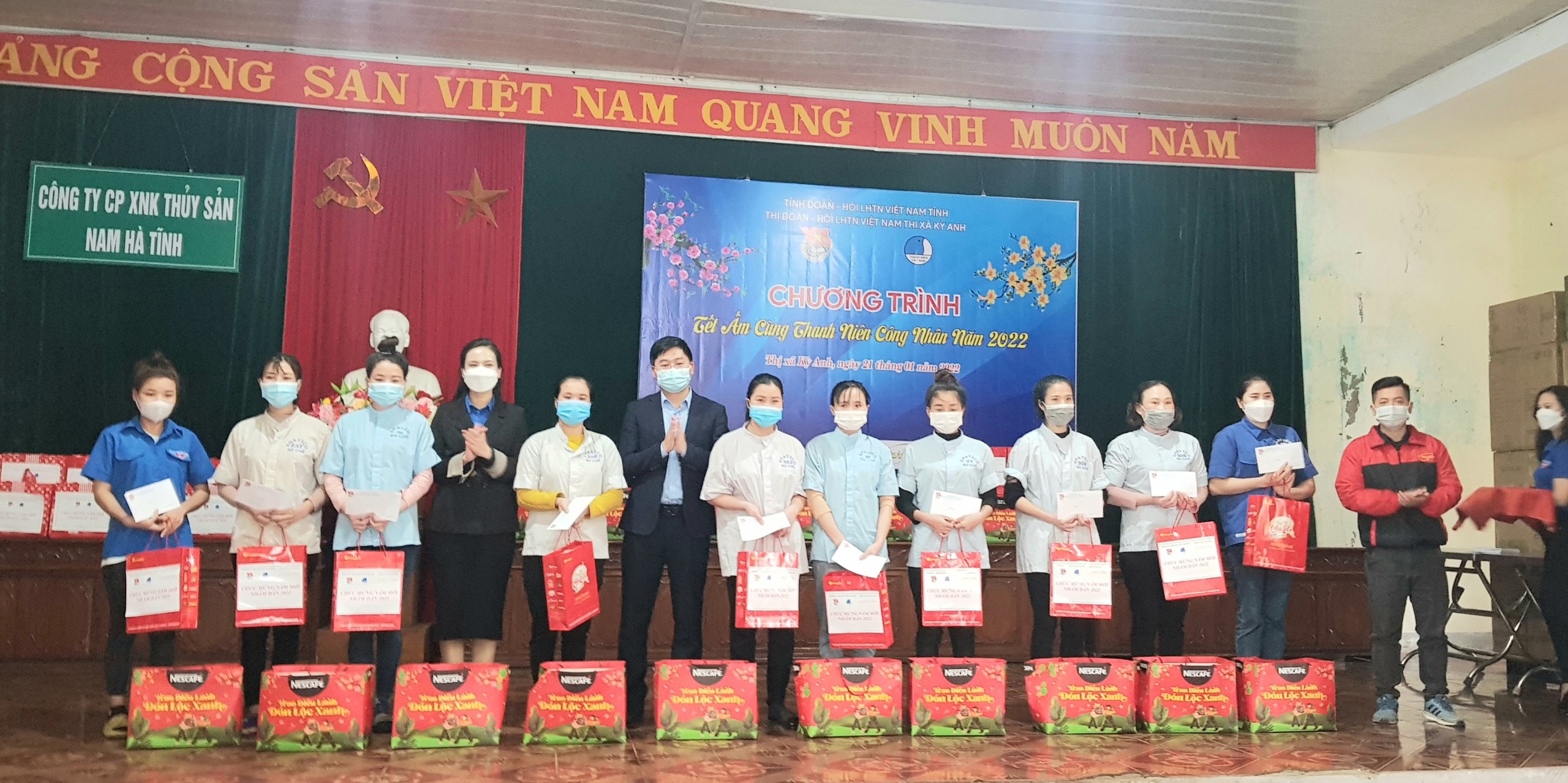 ĐTN: Nằm trong chuỗi các hoạt động “Tết ấm cùng Thanh niên Công nhân” do Tỉnh đoàn, Hội LHTN Việt Nam tỉnh phát động, vừa qua, tại Công ty CP xuất nhập khẩu Thuỷ sản Nam Hà Tĩnh đã trao tặng 60 suất quà cho thanh niên công nhân có hoàn cảnh khó khăn.
