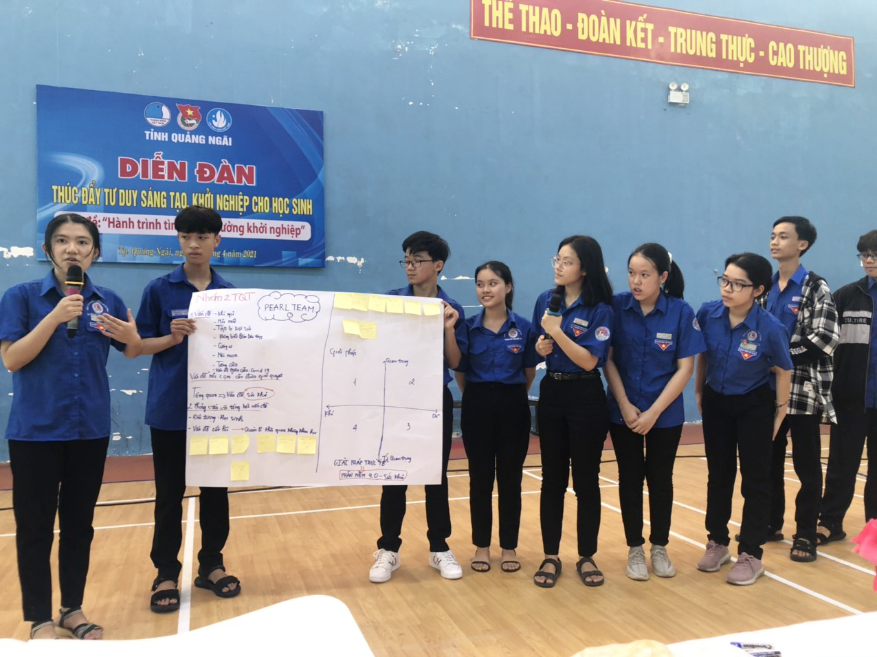 ĐTN: Sáng 25/4, Tỉnh đoàn và Hội Sinh viên Việt Nam tỉnh Quảng Ngãi tổ chức diễn đàn thúc đẩy tư duy sáng tạo, khởi nghiệp cho học sinh chủ đề "Hành trình tìm kiếm ý tưởng khởi nghiệp". Diễn đàn thu hút hơn 250 học sinh trên địa bàn tỉnh đến tham gia.