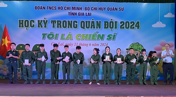 ĐTN: Ngày 20/6, tại Trung tâm Hoạt động Thanh thiếu nhi tỉnh Gia Lai, Tỉnh Đoàn phối hợp với Bộ Chỉ huy Quân sự tỉnh bế mạc chương trình Học kỳ trong quân đội năm 2024 với chủ đề “Tôi là chiến sĩ”.