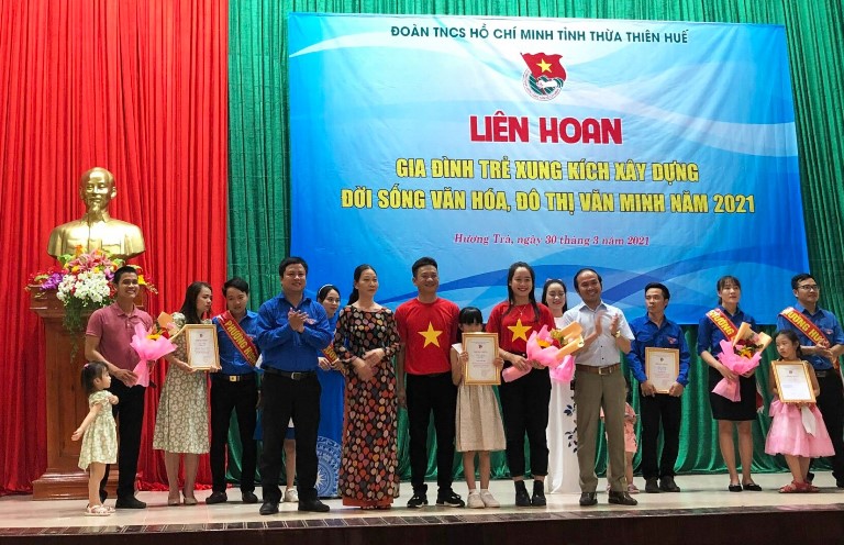 ĐTN: Sáng 30/3, Ban Thường vụ Tỉnh Đoàn tổ chức Liên hoan gia đình trẻ xung kích xây dựng đời sống văn hóa, đô thị văn minh năm 2021 tại Thị xã Hương Trà.