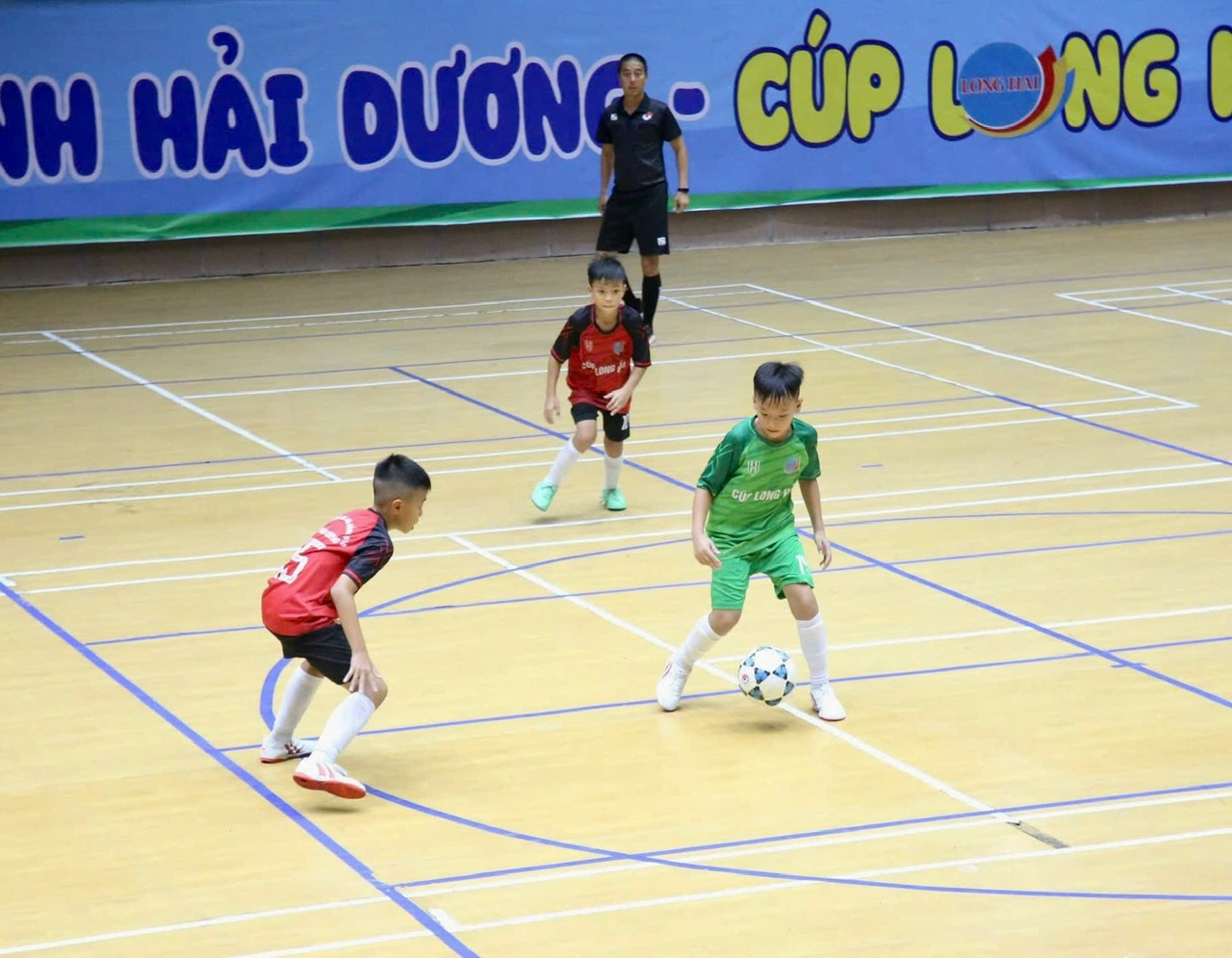 ĐTN: Giải bóng đá nhi đồng U10 Cúp Long Hải tỉnh Hải Dương năm 2024 diễn ra từ ngày 17-21/8 tại Nhà Thi đấu Thể dục Thể thao tỉnh với sự tham gia của 180 cầu thủ đến từ 12 huyện, thị xã, thành phố trên địa bàn tỉnh.