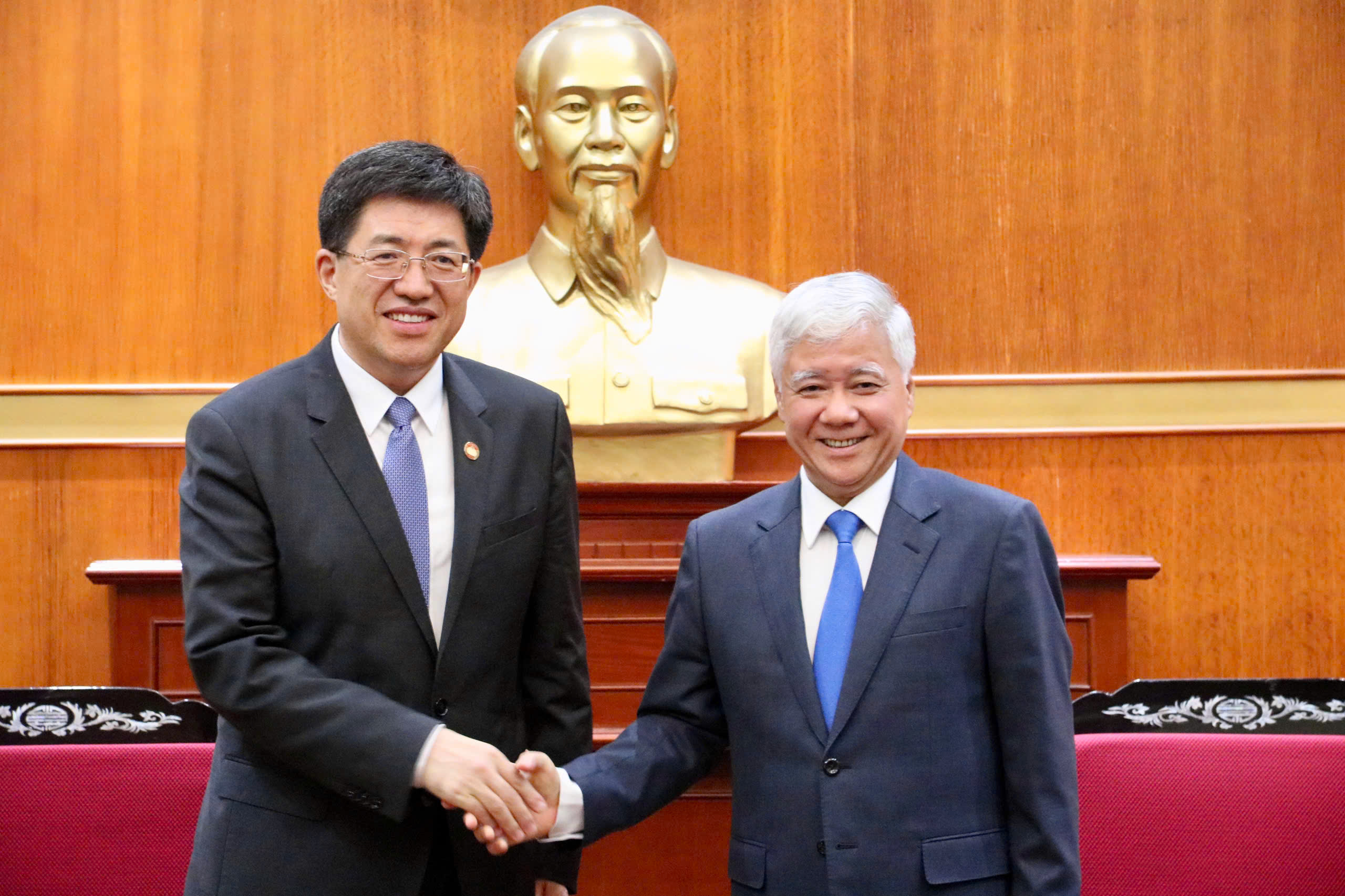 ĐTN: Chiều ngày 14/4, đoàn đại biểu cấp cao Trung ương Đoàn TNCS Trung Quốc do đồng chí A Đông, Bí thư thứ nhất Ban Bí thư Trung ương Đoàn TNCS Trung Quốc dẫn đầu, đã đến chào xã giao đồng chí Đỗ Văn Chiến, Ủy viên Bộ Chính trị, Bí thư Trung ương Đảng, Chủ tịch Ủy ban Trung ương Mặt trận Tổ quốc Việt Nam.