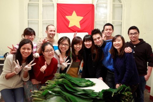 Với du học sinh, Tết vẫn luôn là khoảnh khắc thiêng liêng trong sâu thẳm tâm hồn. Thời khắc Giao thừa, nỗi nhớ nhà lại trỗi dậy, tha thiết và khắc khoải.Sinh viên Việt Nam trổ tài làm nem đãi các bạn quốc tế