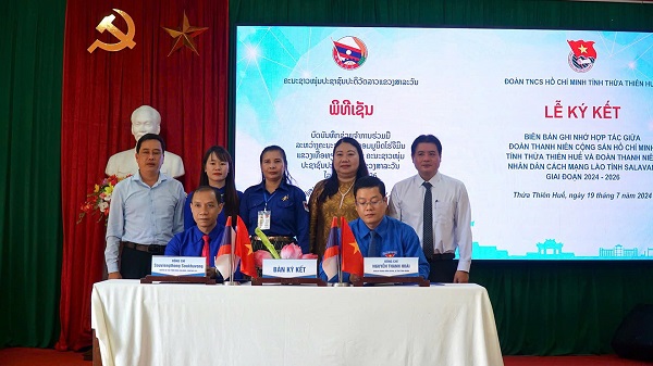 ĐTN: Sáng ngày 19/7, Tỉnh Đoàn Thừa Thiên Huế và Tỉnh Đoàn Salavan (Lào) đã tổ chức Lễ ký kết biên bản ghi nhớ hợp tác giữa Đoàn TNCS Hồ Chí Minh tỉnh Thừa Thiên Huế và Đoàn Thanh niên Nhân dân Cách mạng Lào tỉnh Salavan, giai đoạn 2024 - 2026. Chương trình diễn ra trên cơ sở thực hiện Biên bản ghi nhớ hợp tác giai đoạn 2015 - 2020 giữa 02 đơn vị.