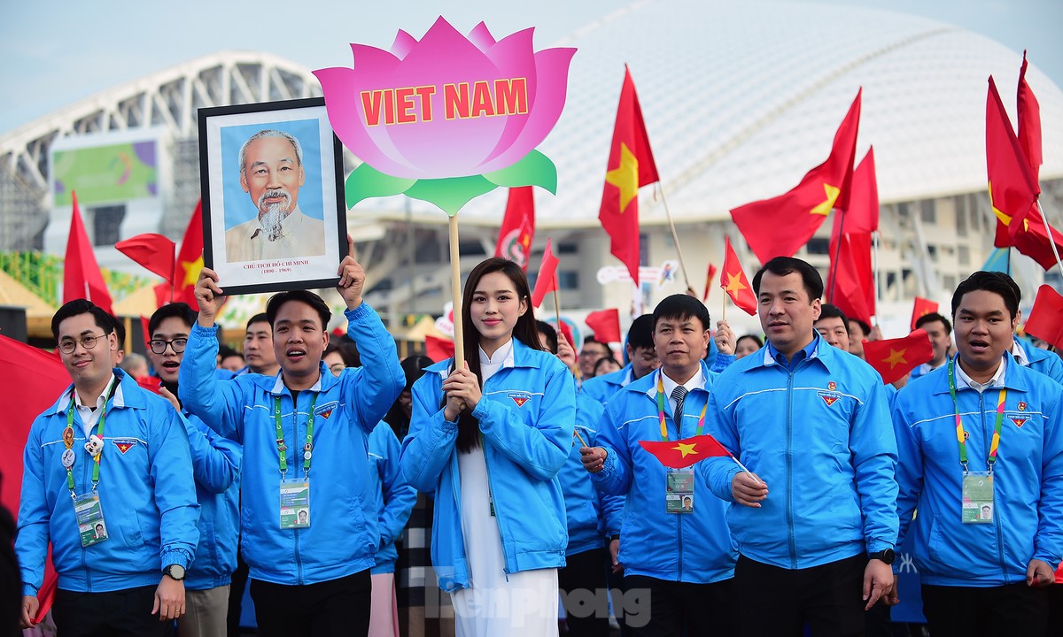 Trong khuôn khổ Liên hoan Thanh niên Thế giới năm 2024 tại Sochi (Liên bang Nga), diễn ra hoạt động diễu hành với sự tham gia của các đoàn đại biểu thanh niên thế giới. Cùng với đoàn Việt Nam, nhiều đại biểu thanh niên quốc tế cùng hô vang “Việt Nam, Hồ Chí Minh” và hoà cùng giai điệu “Như có Bác Hồ trong ngày vui đại thắng”. Cờ đỏ sao vàng tung bay ở Liên hoan Thanh niên thế giới 2024 ảnh 1