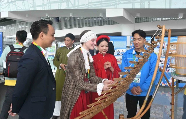 Hơn 60 nước cùng tham gia triển lãm tại Liên hoan Thanh niên thế giới năm 2024 đang diễn ra ở Sochi (Liên bang Nga), trong đó, gian hàng của thanh niên Việt Nam lúc nào cũng thu hút sự chú ý của nhiều bạn trẻ quốc tế bởi tiếng đàn nhị du dương, đàn T'rưng réo rắt…