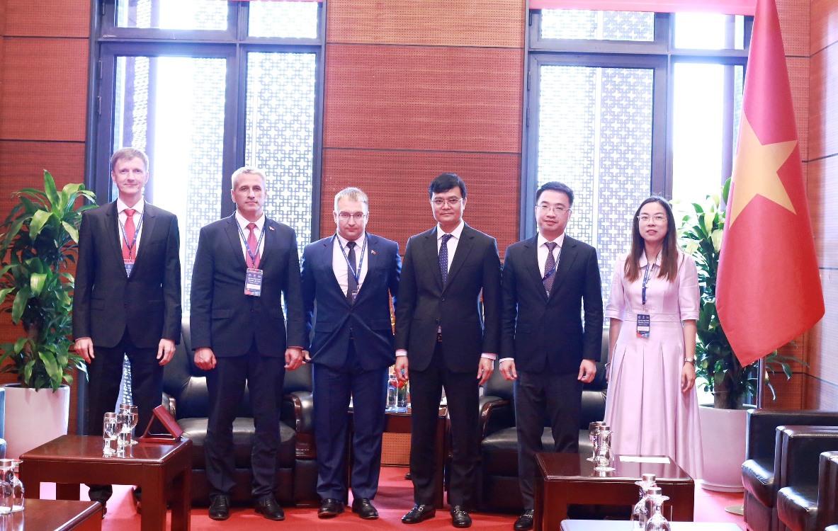 ĐTN: Bên lề chương trình Hội nghị Nghị sĩ trẻ toàn cầu lần thứ 9 được tổ chức tại Việt Nam, sáng 15/9, đồng chí Bùi Quang Huy, Ủy viên dự khuyết T.Ư Đảng, Bí thư thứ nhất T.Ư Đoàn, Chủ nhiệm UBQG về TNVN tiếp xã giao ông Sergei Klishevich, Hạ nghị sĩ, Uỷ viên Ban Chấp hành T.Ư Đảng, Bí thư Ban Chấp hành Trung ương Đoàn TNCS Belarus.