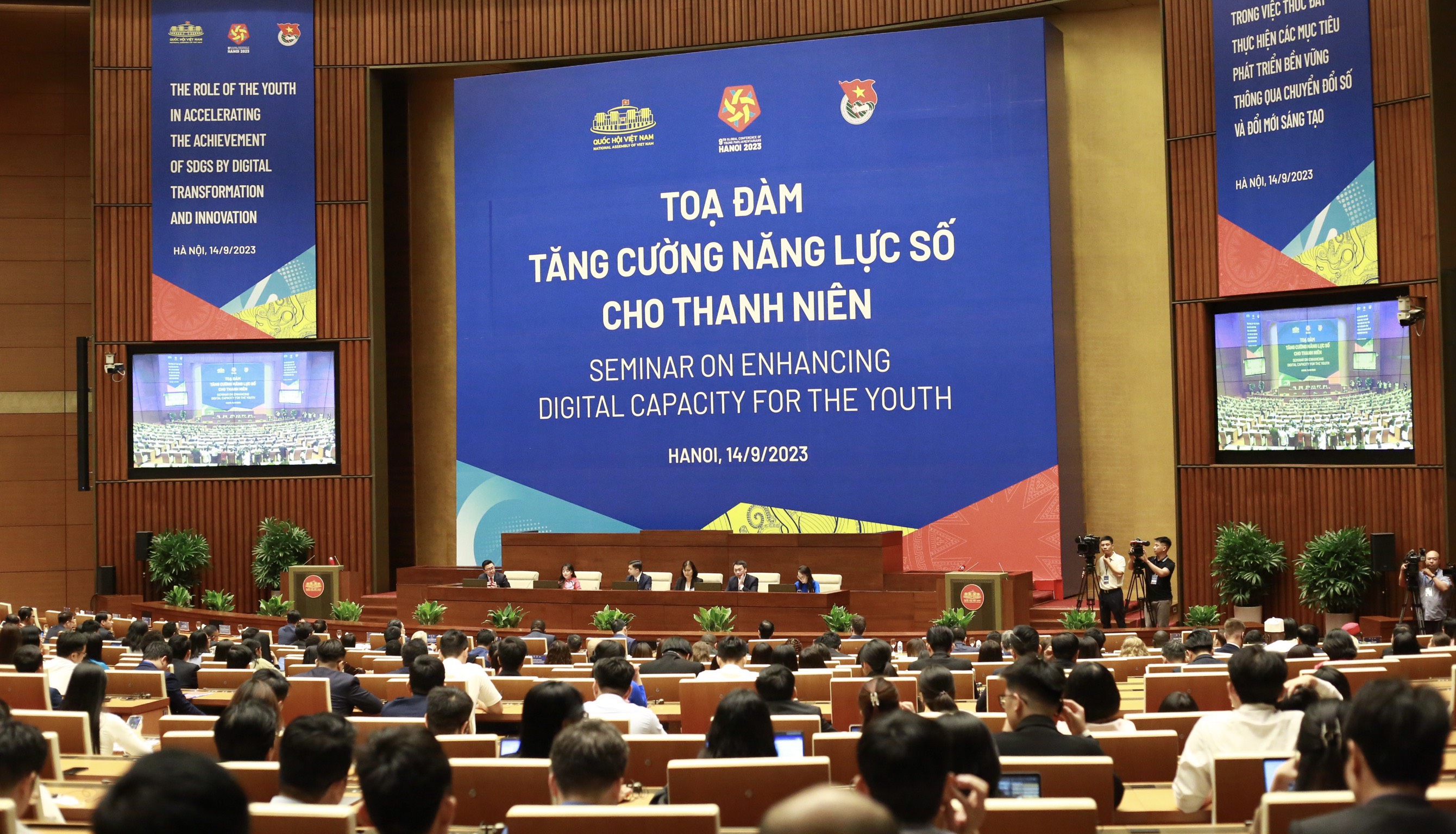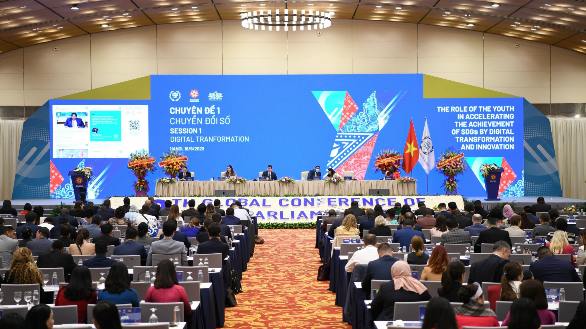 ĐTN: Sáng 15/9, tại Trung tâm Hội nghị Quốc gia, Thủ đô Hà Nội, Hội nghị Nghị sĩ trẻ toàn cầu lần thứ 9 do Quốc hội Việt Nam đăng cai tổ chức đã chính thức khai mạc với chủ đề “Vai trò của giới trẻ trong việc thúc đẩy thực hiện các Mục tiêu phát triển bền vững thông qua chuyển đổi số và đổi mới sáng tạo”.