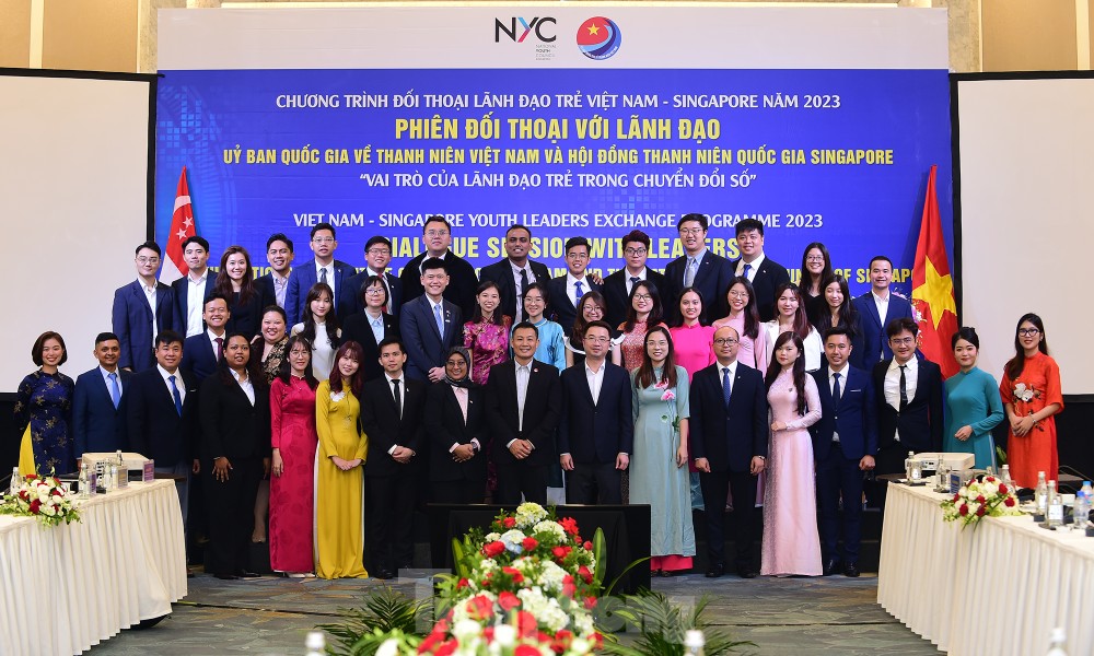 Trong khuôn khổ chương trình Đối thoại lãnh đạo trẻ Việt Nam - Singapore năm 2023, chiều 29/8, tại Hà Nội diễn ra phiên đối thoại với lãnh đạo Ủy ban Quốc gia về Thanh niên Việt Nam và Hội đồng Thanh niên Quốc gia Singapore về "Vai trò của lãnh đạo trẻ trong chuyển đổi số".