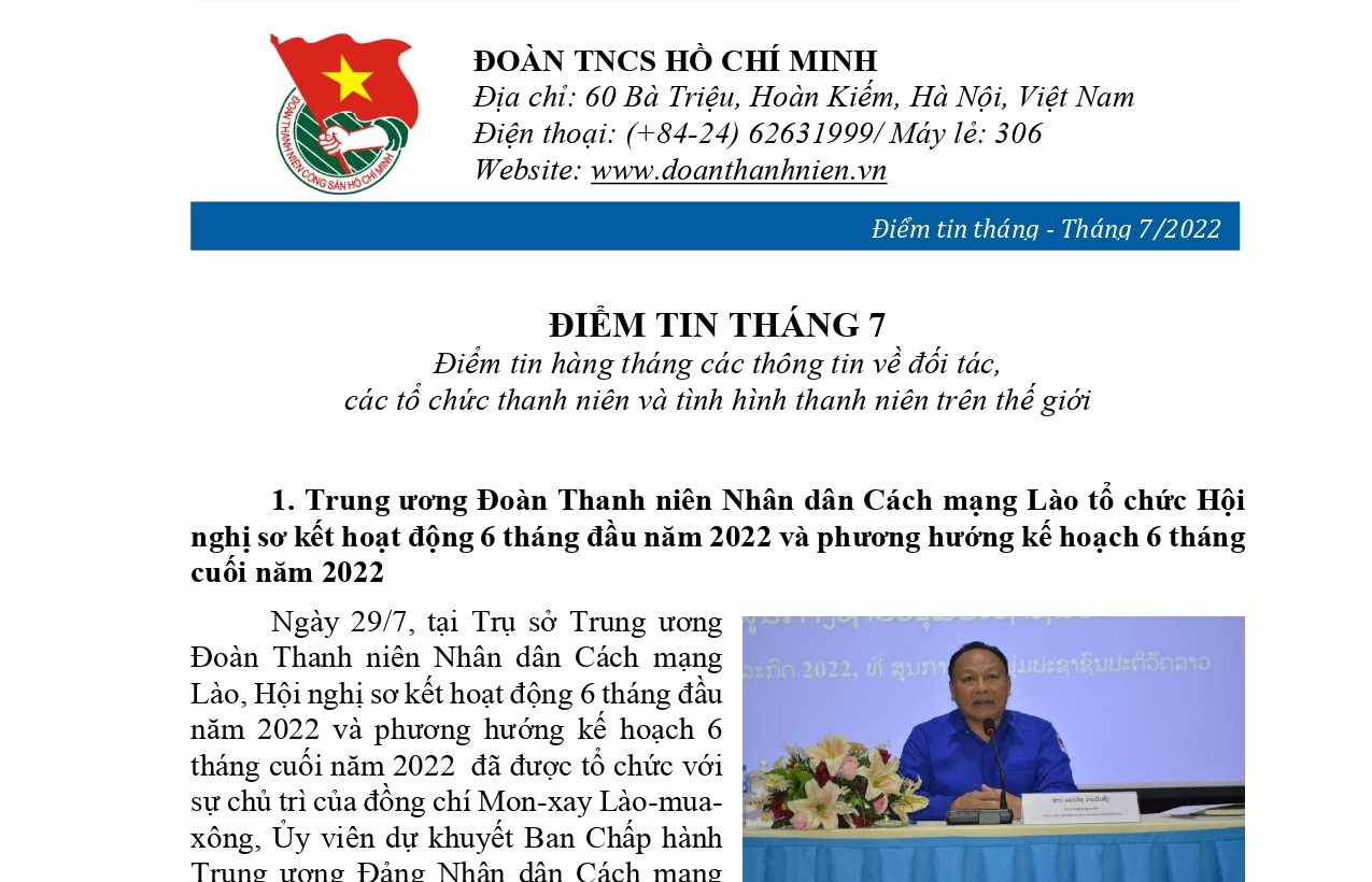 ĐTN: Điểm tin tháng 07-2022 các thông tin về đối tác, các tổ chức thanh niên và tình hình thanh niên trên thế giới.