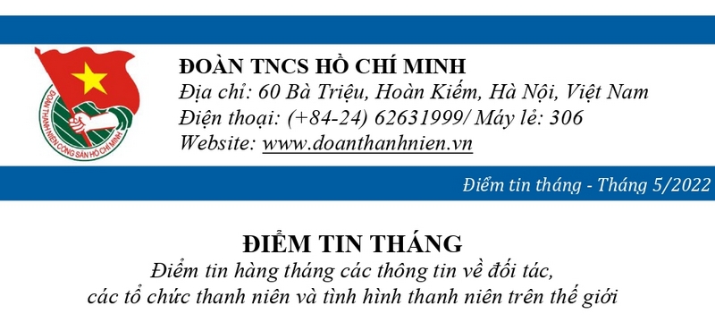 ĐTN: Điểm tin tháng 05/2022 các thông tin về đối tác,các tổ chức thanh niên và tình hình thanh niên trên thế giới .
