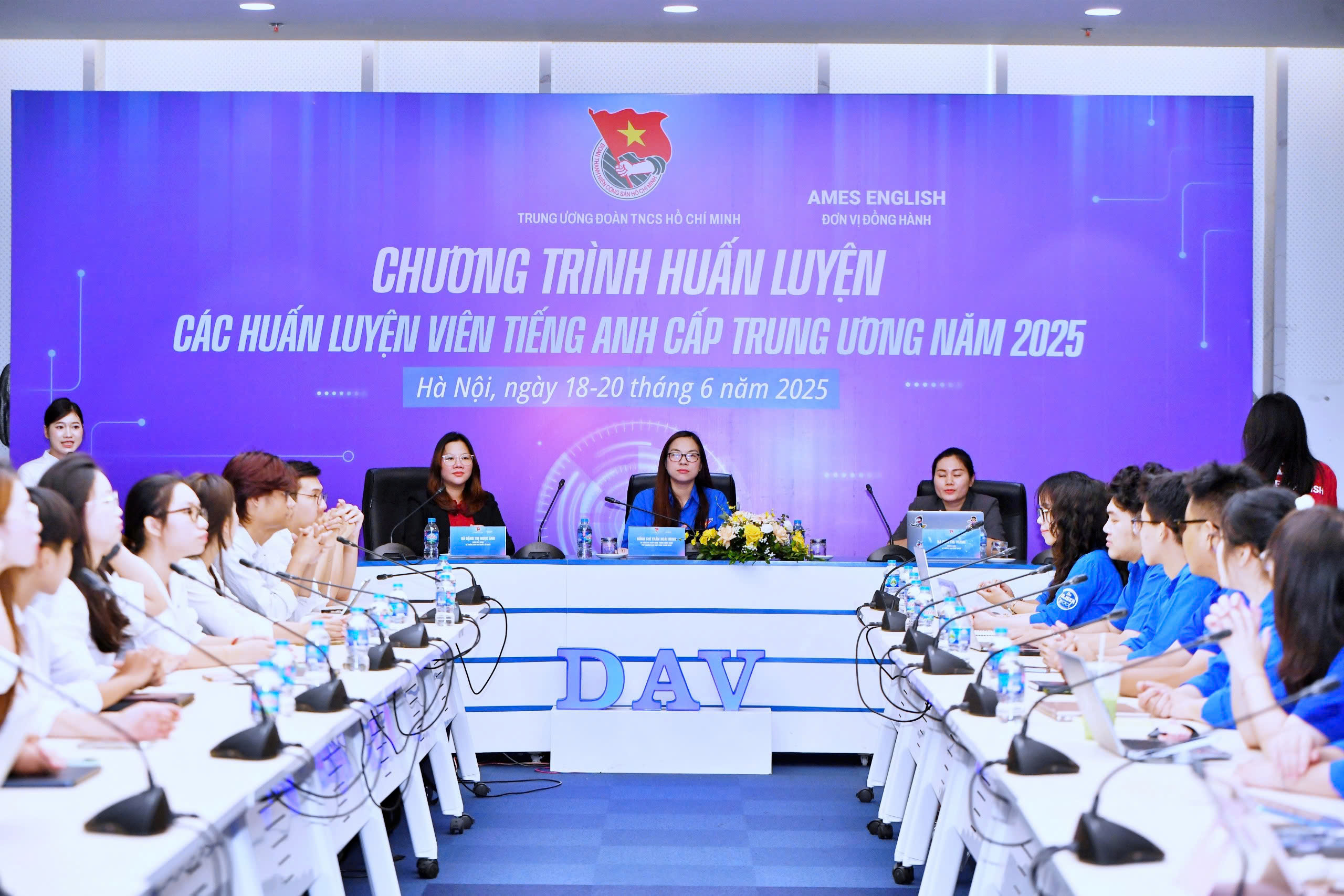 ĐTN: Sáng ngày 18/6/2025, tại Hội Trường Genève, Học viện Ngoại giao; Trung ương Đoàn TNCS Hồ Chí Minh phối hợp với Hệ thống Anh ngữ Quốc tế AMES tổ chức lễ khai mạc chương trình huấn luyện các huấn luyện viên tiếng Anh cấp Trung ương năm 2025.
