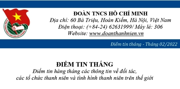 ĐTN: Điểm tin tháng 02 năm 2022 các thông tin về đối tác, các tổ chức thanh niên và tình hình thanh niên trên thế giới.