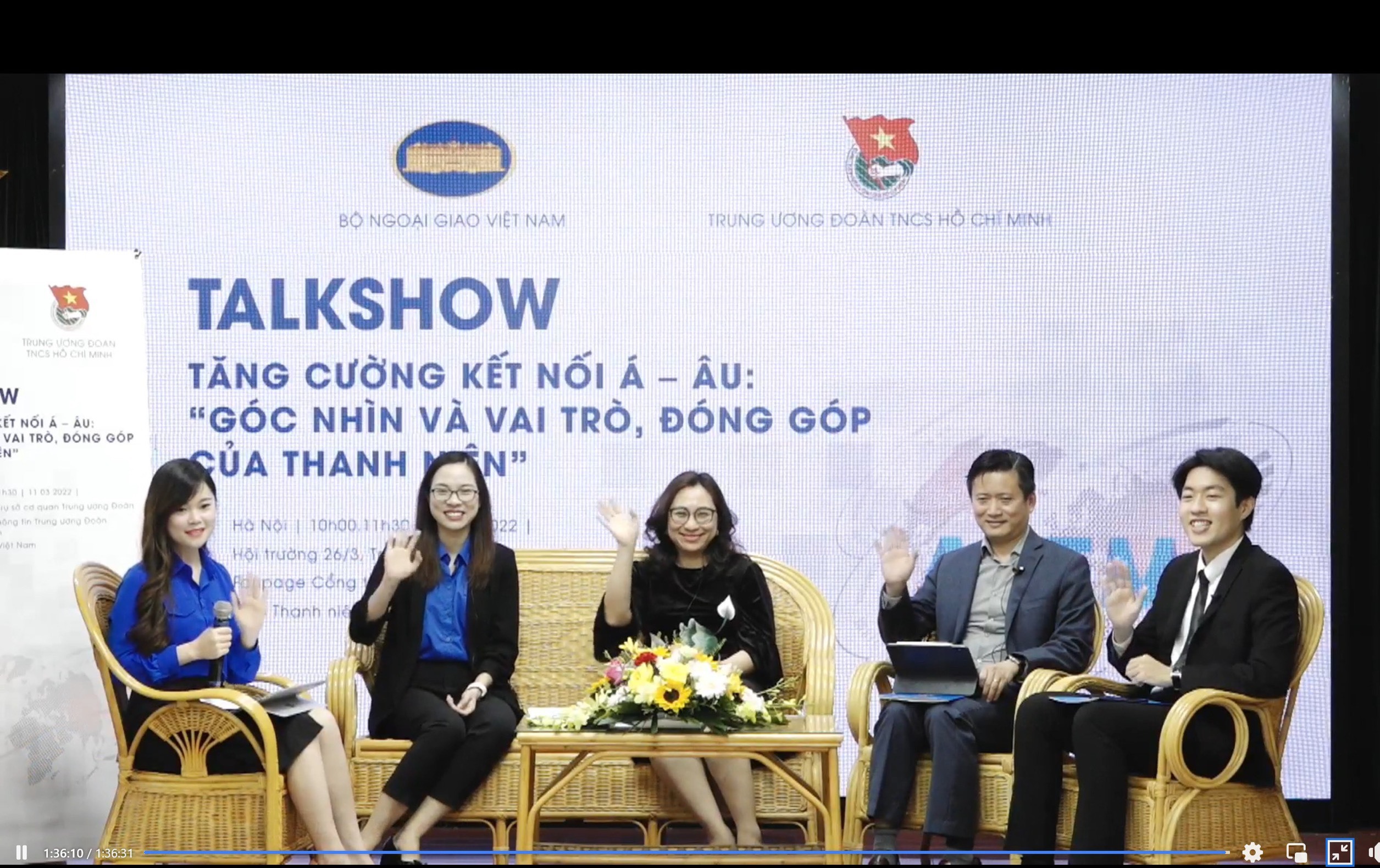 ĐTN: Nhân dịp kỷ niệm Ngày ASEM (Diễn đàn hợp tác Á - Âu) năm 2022, sáng ngày 11/3, Trung ương Đoàn TNCS Hồ Chí Minh phối hợp với Bộ Ngoại giao tổ chức Hội nghị chuyên đề thông tin đối ngoại Quý I năm 2022 dưới hình thức talkshow Tăng cường kết nối Á- Âu: Góc nhìn và vai trò, đóng góp của thanh niên.