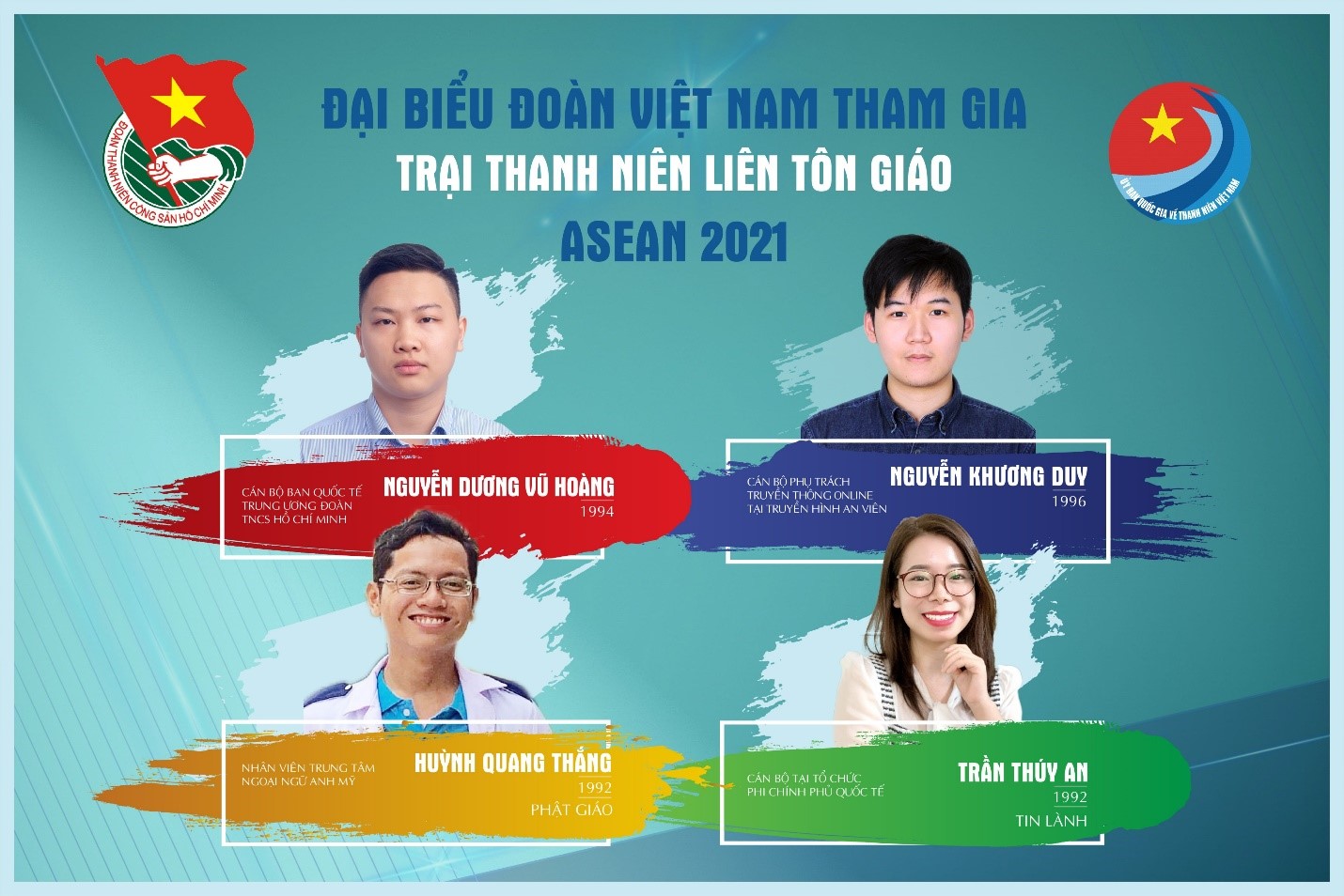 ĐTN: 04 đại biểu thanh niên Việt Nam được Trung ương Đoàn TNCS Hồ Chí Minh và Ủy ban Quốc gia về Thanh niên Việt Nam cử tham gia chương trình Trại Thanh niên liên tôn giáo ASEAN AYIC 2021 tại Indonesia (dưới hình thức trực tuyến).
