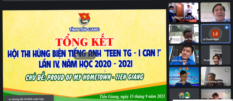 ĐTN: Ngày 15/9/2021, Ban Thường vụ Tỉnh Đoàn Tiền Giang tổ chức tổng kết trực tuyến Hội thi Hùng biện Tiếng Anh “Teen TG - I can!” lần thứ IV năm học 2020 - 2021.
