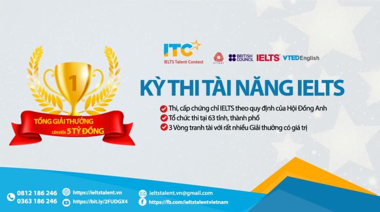 ĐTN: Kỳ thi Tài năng IELTS (IELTS Talent Contest) do Trung tâm Phát triển Khoa học, Công nghệ và Tài năng trẻ Trung ương Đoàn, Công ty TNHH British Council (Việt Nam) (thuộc Hội đồng Anh Việt Nam) và Công ty TNHH Thương mại và Phát triển Giáo dục Việt Nam phối hợp tổ chức.