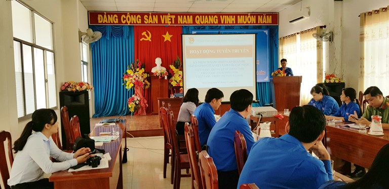 Web.ĐTN: Ngày 07/11, tại hội trường Tỉnh Đoàn, Ban Thường vụ Tỉnh Đoàn tổ chức hoạt động Tuyên truyền kỷ niệm 70 năm thiết lập quan hệ ngoại giao giữa Việt Nam với Trung Quốc, Nga và Triều Tiên trong cán bộ đoàn chủ chốt cấp tỉnh, các huyện, thành, thị Đoàn và Đoàn trực thuộc.