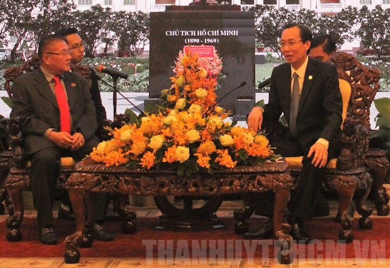 Web.ĐTN: Chiều ngày 10/10, đồng chí Bùi Quang Huy, Bí thư T.Ư Đoàn, Chủ tịch Hội sinh viên Việt Nam đã tiếp xã giao đoàn đại biểu cán bộ thanh niên Nhân dân Cách mạng Lào do đồng chí Khăm Pha Sỷ Ven Sa Mỏn, Phó Bí thư Tỉnh Đoàn At Tạ Pư làm trưởng đoàn.