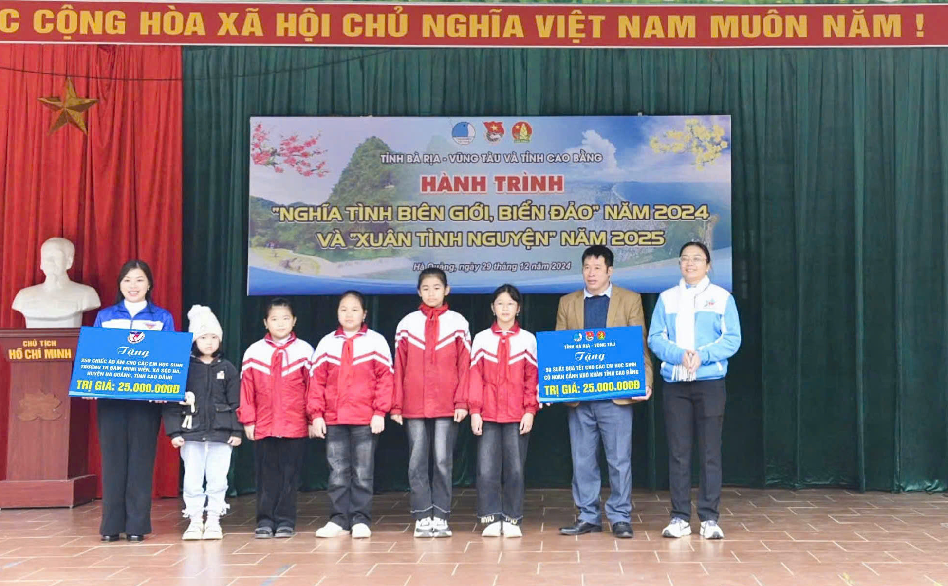 Ngày 29/12, tại tỉnh Cao Bằng, Tỉnh đoàn - Hội LHTN Việt Nam tỉnh - Hội đồng Đội tỉnh phối hợp với Tỉnh đoàn Bà Rịa - Vũng Tàu tổ chức Hành trình “Nghĩa tình biên giới, biển đảo” năm 2024 và “Xuân tình nguyện năm” 2025 tại Trường Tiểu học Đàm Minh Viễn, xã Sóc Hà, huyện Hà Quảng, tỉnh Cao Bằng.