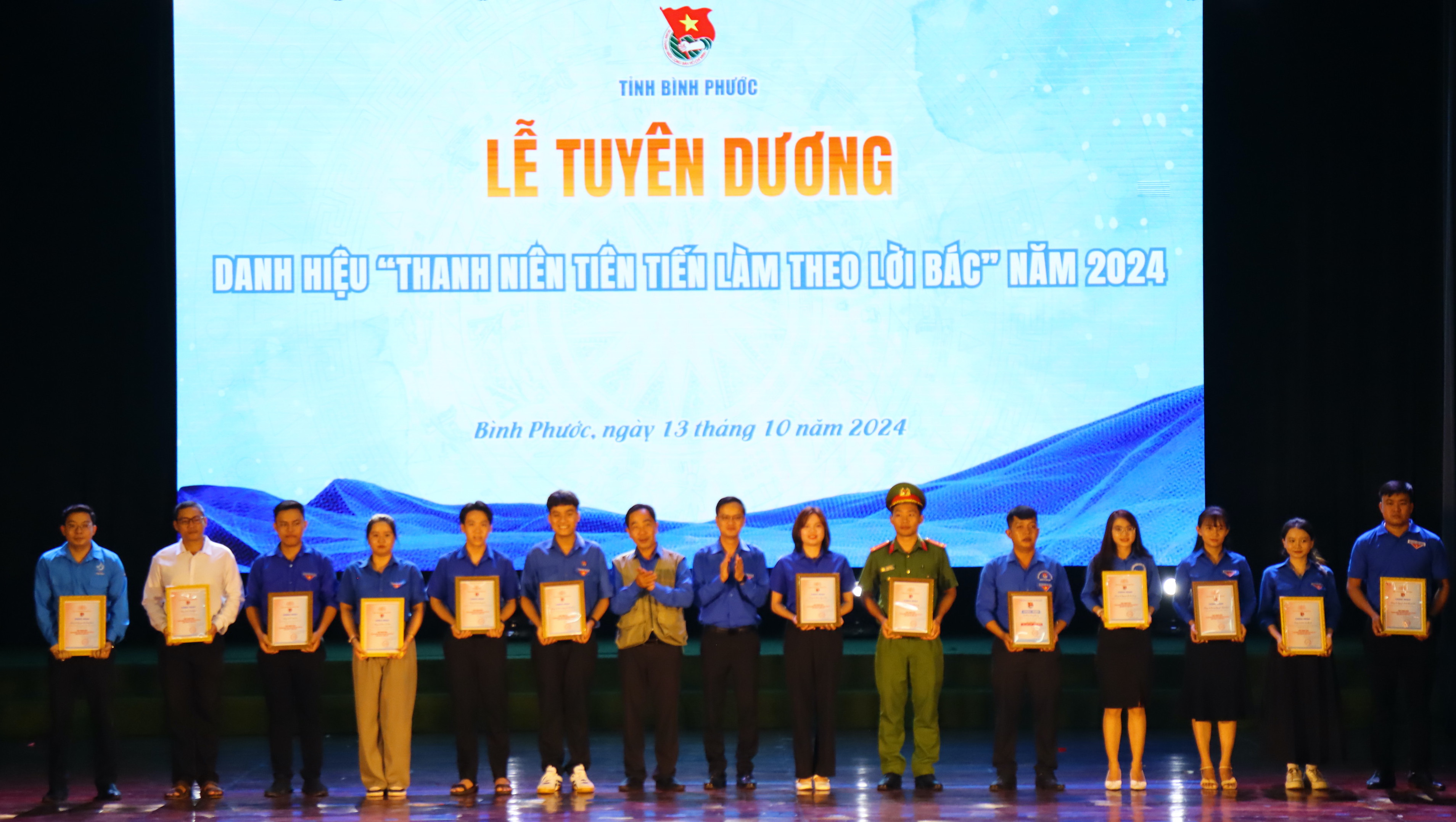 ĐTN: Chiều ngày 13/10/2024, tại tỉnh Bình Phước, Tỉnh đoàn tổ chức Lễ tuyên dương “Thanh niên tiên tiến làm theo lời Bác”, tuyên dương danh hiệu “Sinh viên 5 tốt”, “Tập thể sinh viên 5 tốt”, “Học sinh 3 rèn luyện” và “Học sinh 3 tốt