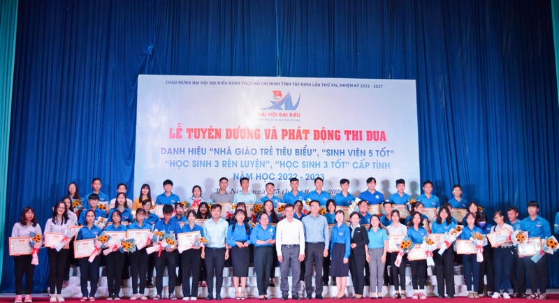 ĐTN: Sáng 25/9 tại Trung tâm Học tập sinh hoạt thanh thiếu nhi tỉnh Tây Ninh đã long trọng tổ chức Lễ Tuyên dương và phát động thi đua danh hiệu “Nhà giáo trẻ tiêu biểu”, “Sinh viên 5 tốt”, “Học sinh 3 rèn luyện”, “Học sinh 3 tốt” cấp tỉnh, năm học 2022 - 2023.