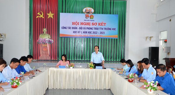 ĐTN: Chiều 01/02, Tỉnh đoàn Sóc Trăng tổ chức hội nghị sơ kết công tác Đoàn - Đội và phong trào thanh thiếu nhi trường học học kỳ I, năm học 2022 - 2023. Dự và chỉ đạo hội nghị có đồng chí Huỳnh Quốc Quy - Phó Bí thư Thường trực Tỉnh Đoàn, Chủ tịch Hội đồng Đội tỉnh Sóc Trăng.