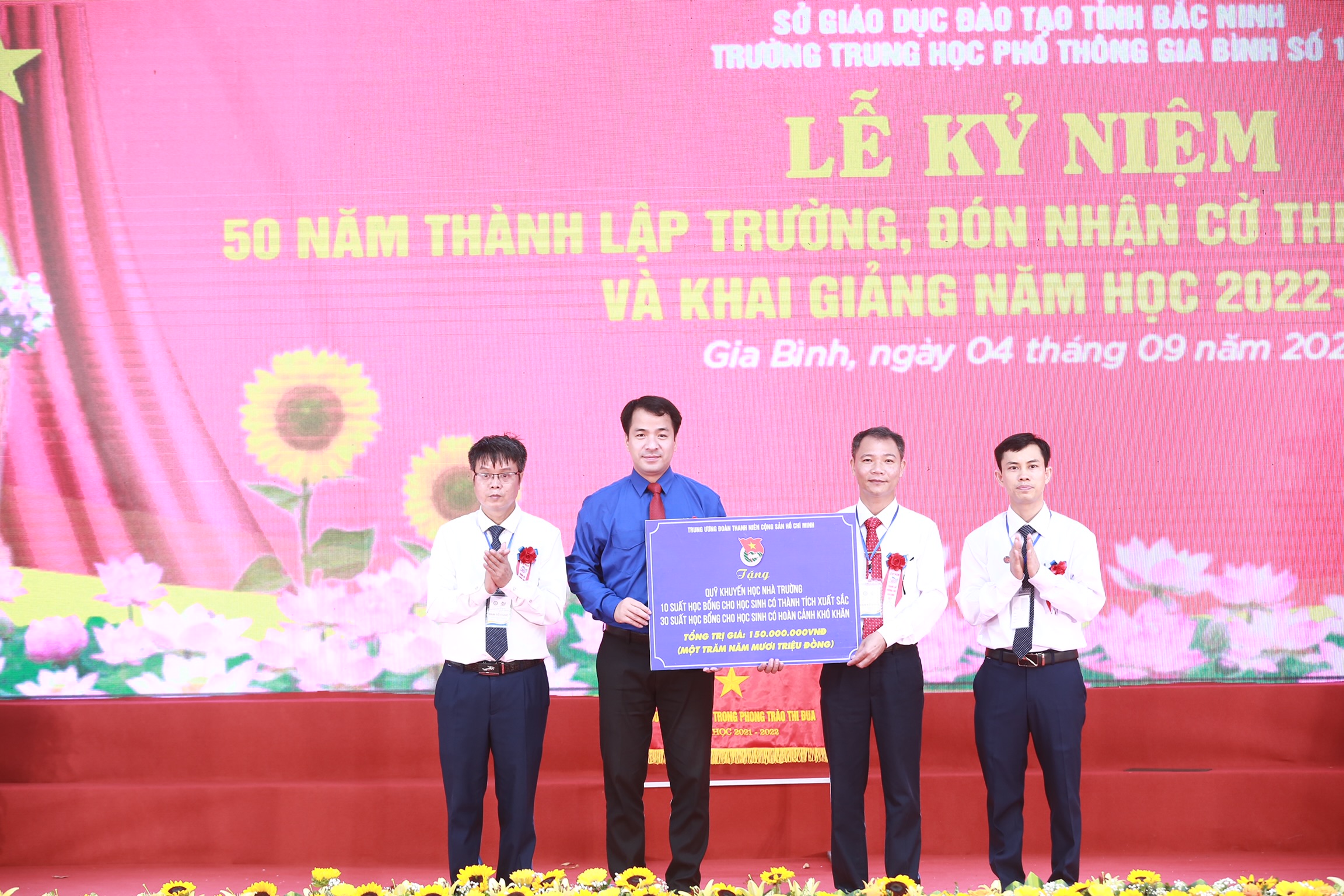 ĐTN: Sáng 4.9 đã diễn ra lễ khai giảng năm học mới tại trường THPT Gia Bình số 1, tỉnh Bắc Ninh. Tại lễ khai giảng, T.Ư Đoàn đã trao tặng 100 triệu đồng kinh phí cho Quỹ khuyến học của trường và nhiều suất học bổng cho các em học sinh.