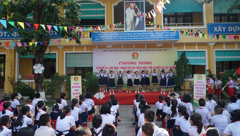 Web.ĐTN: Ban Thường vụ Tỉnh Đoàn, Hội đồng Đội tỉnh Thừa Thiên Huế đã tổ chức Chương trình kỷ niệm 79 năm Ngày thành lập Đội Thiếu niên tiền phong Hồ Chí Minh (15/5/1941 – 15/5/2020) và kỷ niệm 130 năm Ngày sinh Chủ tịch Hồ Chí Minh (19/5/1890 – 19/5/2020), tại trường Tiểu học Thuận Hòa, thành phố Huế.
