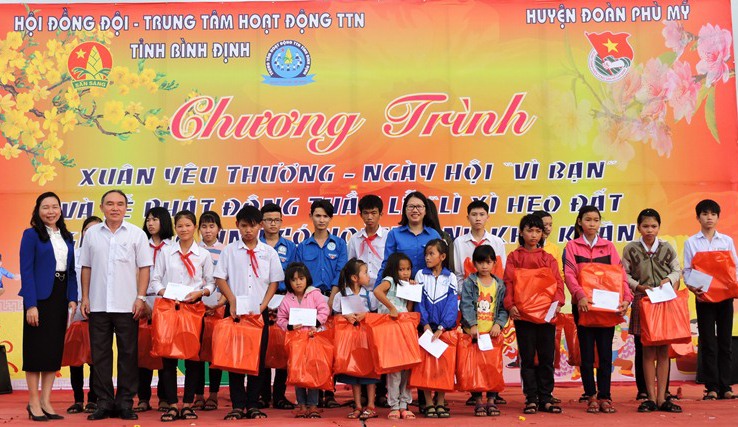 Web.ĐTN: Hội đồng Đội tỉnh chỉ đạo Trung tâm Hoạt động thanh thiếu nhi tỉnh phối hợp với Hội đồng Đội huyện Phù Mỹ tổ chức Ngày hội “Vì bạn”’ phát động tuần lễ “Lì xì heo đất trao góc học tập giúp bạn học tốt” và chương trình “Xuân yêu thương” vào ngày 19/01, tại Quảng trường huyện Phù Mỹ.