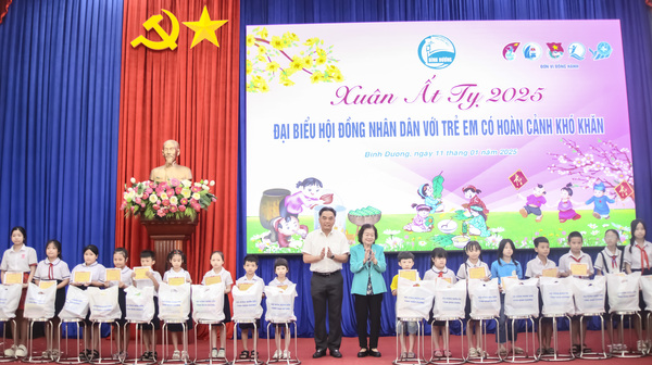 ĐTN: Sáng 11/01/2025, tại tỉnh Bình Dương, HĐND tỉnh phối hợp với Quỹ học bổng Vừ A Dính, Sở Lao động - Thương binh và Xã hội, Ban Thường vụ Tỉnh đoàn và Hội Thầy thuốc trẻ tỉnh tổ chức chương trình “Đại biểu Hội đồng nhân dân với trẻ em có hoàn cảnh khó khăn - Xuân Ất Tỵ 2025”.