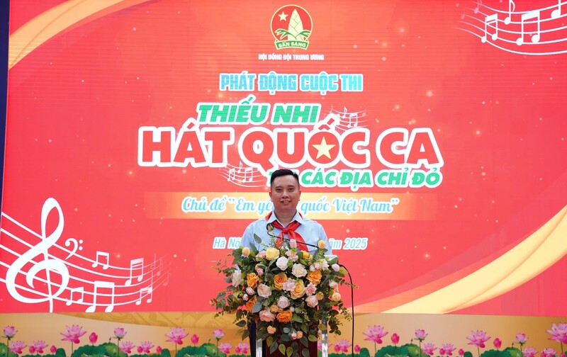 ĐTN: Sáng ngày 25/4/2025, tại trường Tiểu học Trung Yên (thành phố Hà Nội), Hội đồng Đội Trung ương tổ chức phát động cuộc thi thiếu nhi hát Quốc ca tại các địa chỉ đỏ.