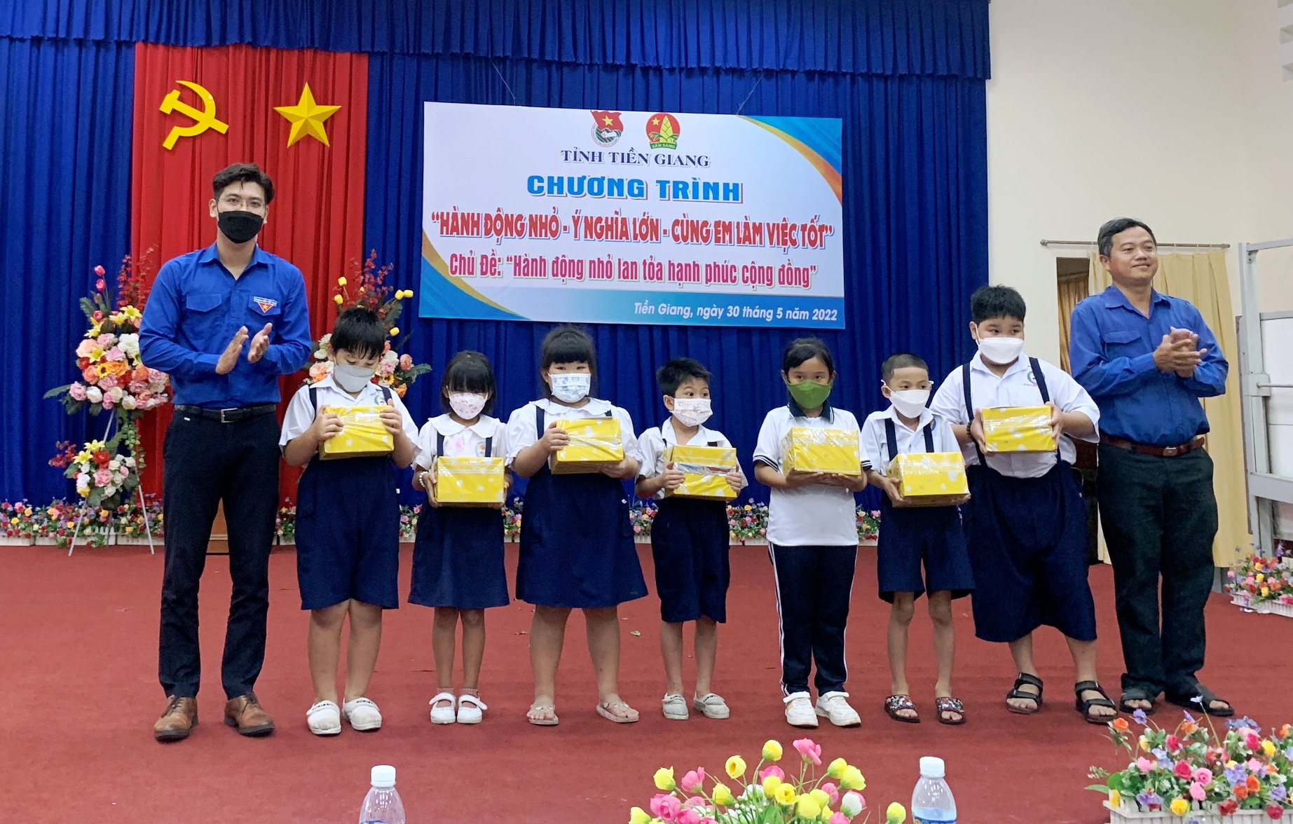 ĐTN: Ngày 30/5, tại Trường Tiểu học Nguyễn Huệ, thành phố Mỹ Tho, Hội đồng Đội tỉnh tổ chức chương trình “Hành động nhỏ - Ý nghĩa lớn - Cùng em làm việc tốt” với chủ đề “Hành động nhỏ lan tỏa hạnh phúc cộng đồng”. Đây là đơn vị được tỉnh chọn làm điểm triển khai trong năm học.