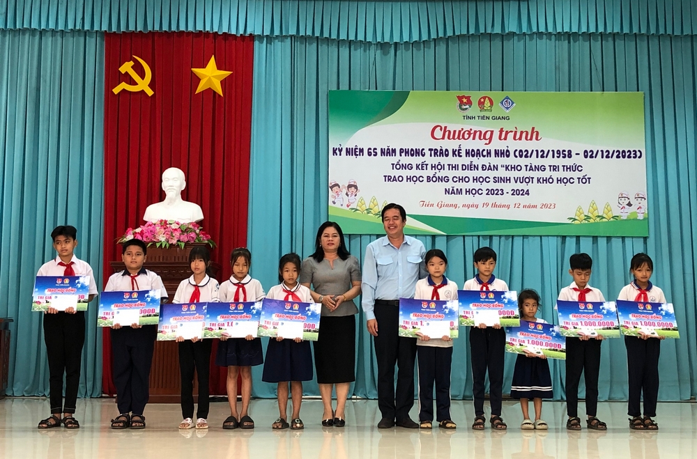 ĐTN: Ngày 19/12, Ban Thường vụ Tỉnh đoàn, Hội đồng Đội tỉnh Tiền Giang phối hợp Sở Giáo dục và Đào tạo tỉnh tổ chức chương trình kỷ niệm 65 năm phong trào Kế hoạch nhỏ (2/12/1958 - 2/12/2023), tổng kết Hội thi Diễn đàn “Kho tàng tri thức” và trao học bổng cho học sinh vượt khó học tốt năm học 2023 - 2024.