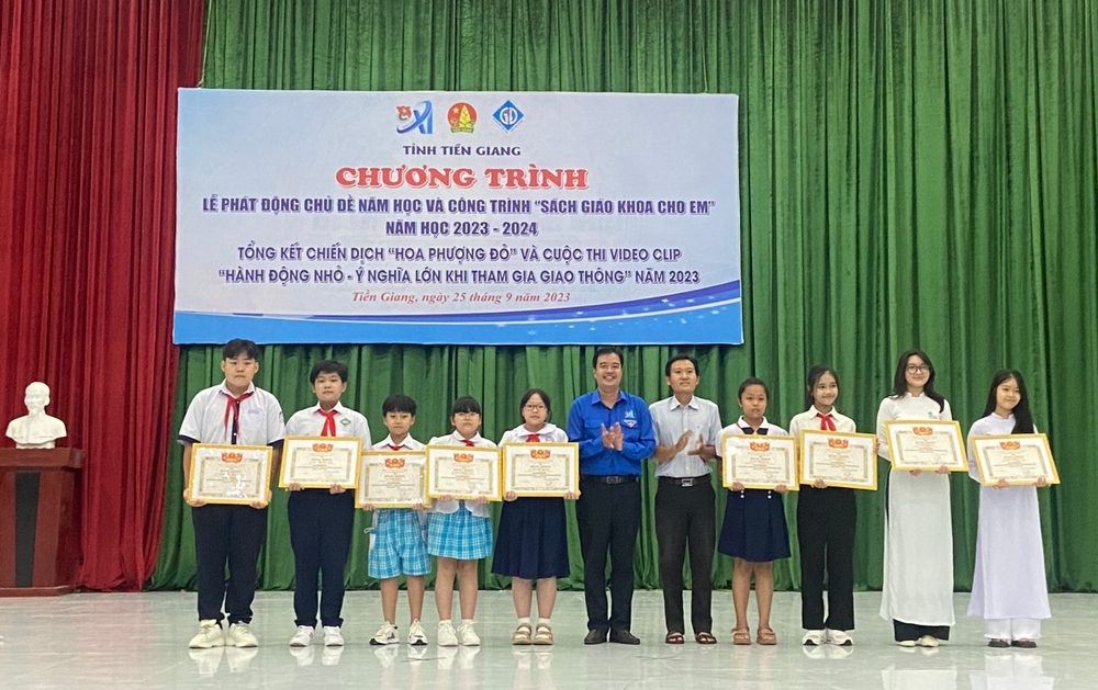ĐTN: Ngày 25/9, tại Nhà Thiếu nhi tỉnh Tiền Giang, Ban Thường vụ Tỉnh đoàn, Hội đồng Đội tỉnh phối hợp Sở Giáo dục và Đào tạo tỉnh Tiền Giang tổ chức Lễ phát động chủ đề năm học 2023 - 2024 và công trình “Sách giáo khoa cho em”; tổng kết Cuộc thi video clip “Hành động nhỏ - Ý nghĩa lớn khi tham gia giao thông” năm 2023.