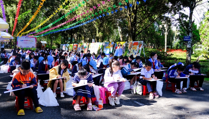 500 thiếu nhi TP Đà Lạt tham gia vẽ tranh" Làm nghìn việc tốt”