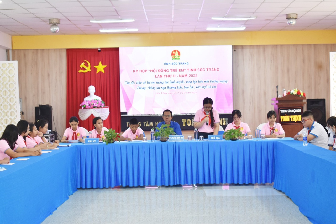 ĐTN: Sáng ngày 26/8, Hội đồng Đội tỉnh Sóc Trăng tổ chức kỳ họp “Hội đồng trẻ em” tỉnh Sóc Trăng lần thứ II, năm 2023 với chủ đề “Bảo vệ trẻ em tương tác lành mạnh, sáng tạo trên môi trường mạng; phòng chống tai nạn thương tích, bạo lực xâm hại trẻ em”.