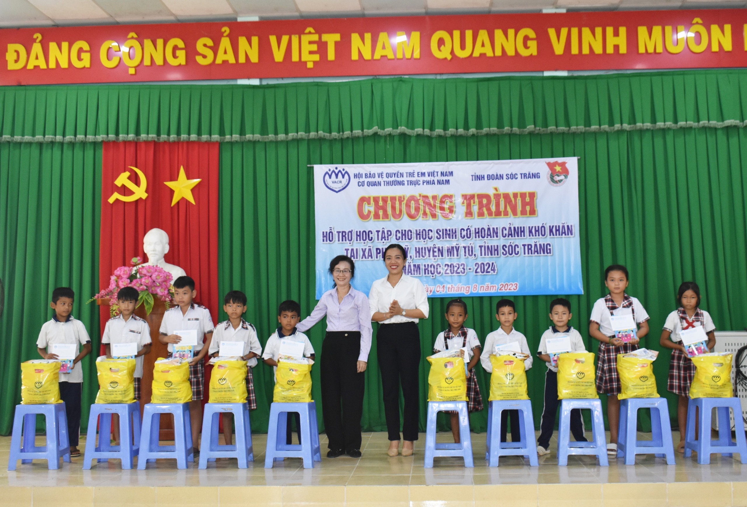 ĐTN: Sáng ngày 04/8, tại xã Phú Mỹ huyện Mỹ Tú, Ban Thường vụ Tỉnh Đoàn phối hợp với Hội bảo vệ quyền trẻ em Việt Nam - Cơ quan Thường trực phía Nam tổ chức chương trình hỗ trợ học tập cho học sinh có hoàn cảnh khó khăn.