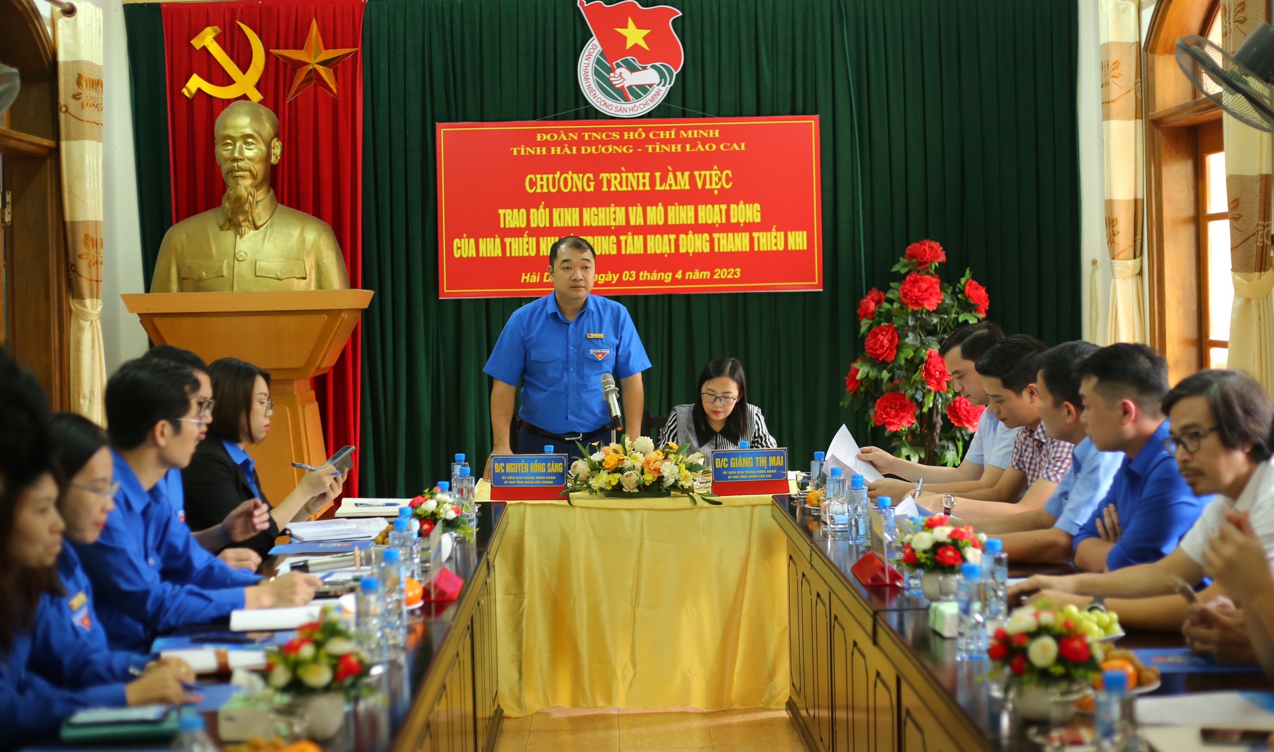 ĐTN: Chiều 3/4, tại Phòng họp Nhà Thiếu nhi tỉnh, Ban Thường vụ Tỉnh đoàn đón tiếp Đoàn công tác của Tỉnh đoàn Lào Cai về thăm và trao đổi kinh nghiệm và mô hình hoạt động của Nhà Thiếu nhi và Trung tâm hoạt động Thanh thiếu nhi.