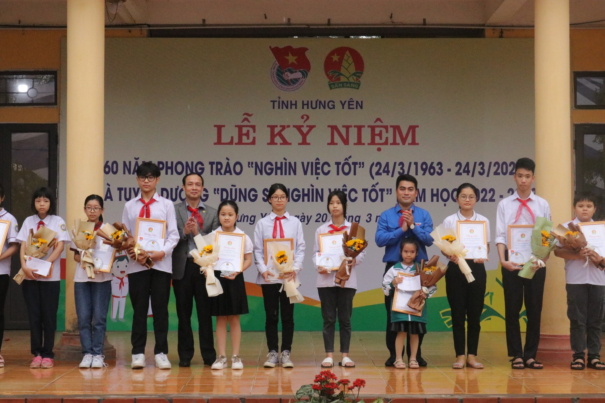 ĐTN: Sáng ngày 20/3, tại trường Tiểu học Ngọc Thanh, huyện Kim Động, Tỉnh đoàn, Hội đồng Đội tỉnh Hưng Yên tổ chức Chương trình kỷ niệm 60 năm phong trào “Nghìn việc tốt” và tuyên dương “Dũng sỹ Nghìn việc tốt” năm học 2022 - 2023.