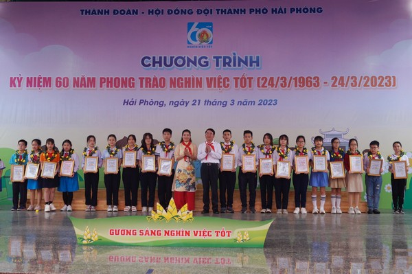 ĐTN: Ngày 21/3, tại trường THCS Lạc Viên, Ban Thường vụ Thành đoàn tổ chức Chương trình kỷ niệm 60 năm phong trào “Nghìn việc tốt” với chủ đề “Thiếu nhi Hải Phòng - Tiếp bước cha anh - Làm nghìn việc tốt”.