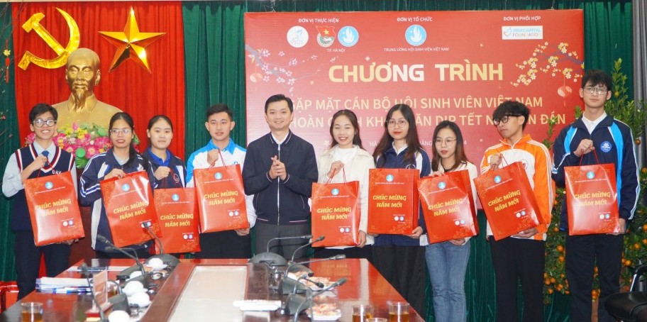 ĐTN: Sáng 30/1, T.Ư Đoàn - T.Ư Hội Sinh viên Việt Nam chỉ đạo Trung tâm Hỗ trợ và Phát triển Sinh viên Việt Nam phối hợp với Thành đoàn - Hội Sinh viên Việt Nam thành phố Hà Nội tổ chức chương trình tặng quà cán bộ Hội Sinh viên có hoàn cảnh khó khăn nhân dịp Tết Giáp Thìn năm 2024.