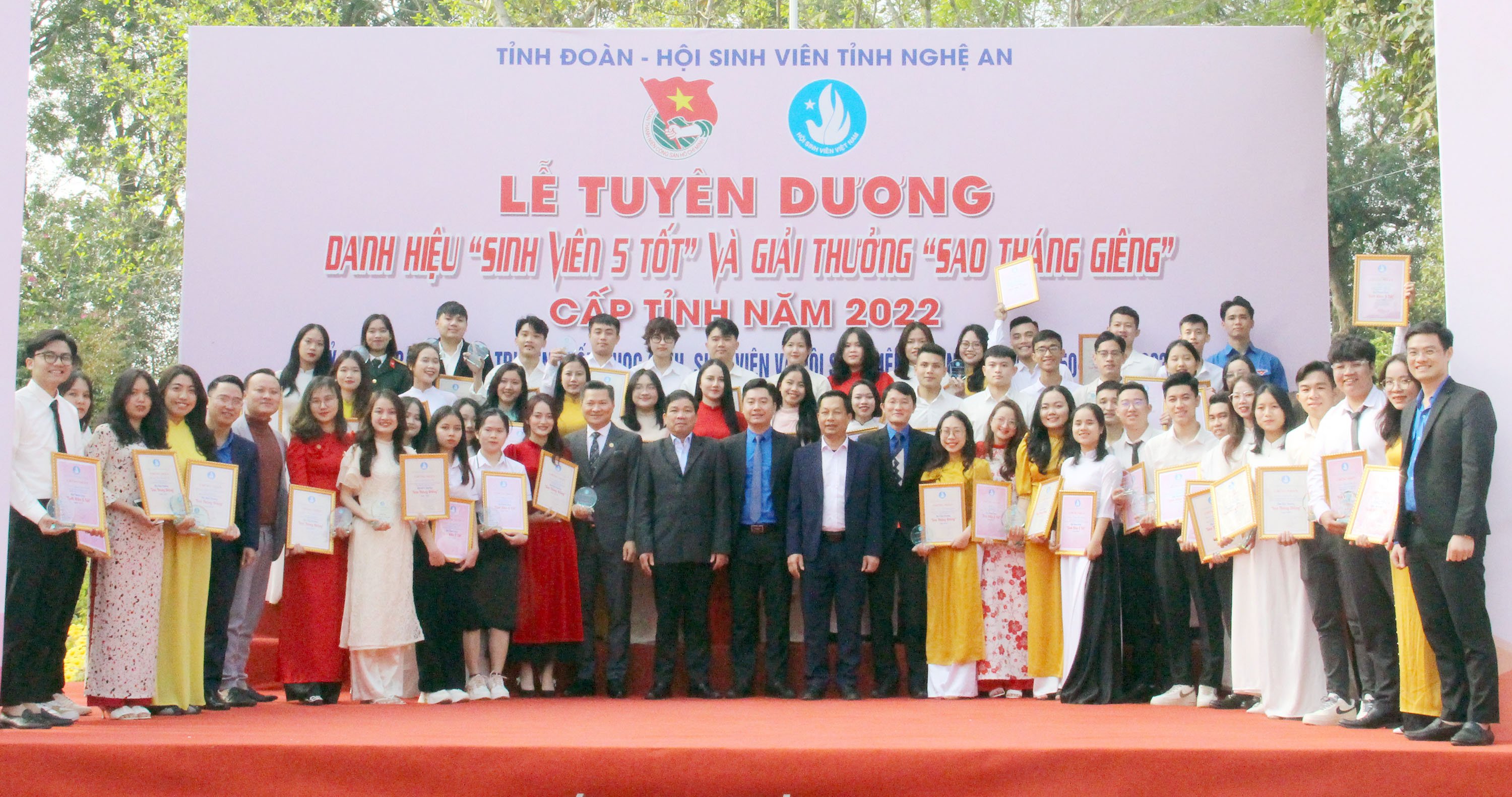 ĐTN: Sáng ngày 07/01, Tỉnh đoàn, Hội Sinh viên tỉnh Nghệ An tổ chức Lễ kỷ niệm 73 năm ngày truyền thống học sinh, sinh viên và Hội Sinh viên Việt Nam (9/1/1950 - 9/1/2023) và tuyên dương danh hiệu "Sinh viên 5 tốt", trao giải thưởng "Sao tháng Giêng" cấp tỉnh năm 2022.