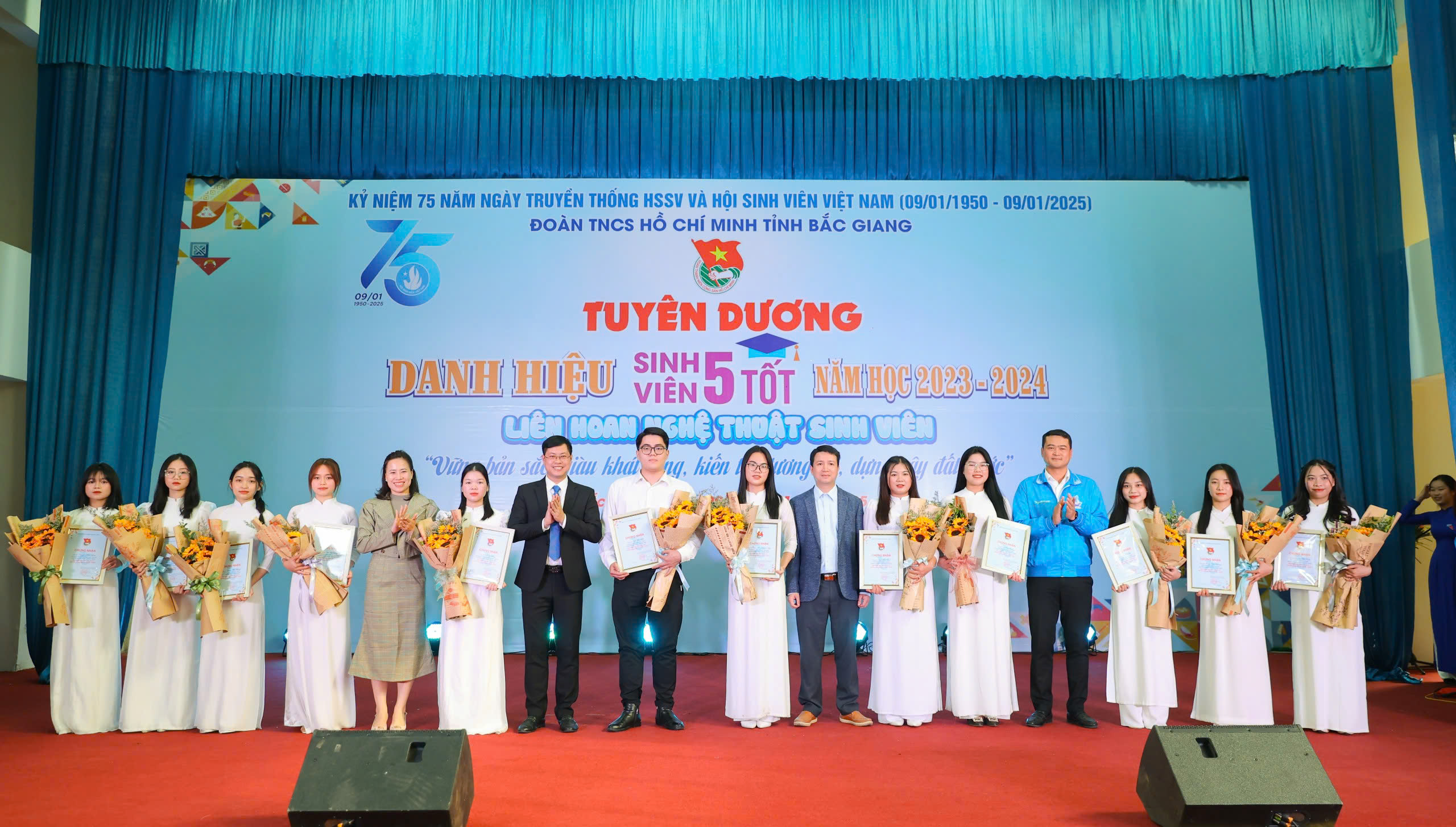 ĐTN: Chiều ngày 9/01, tại Trường Cao đẳng Kỹ thuật Công nghiệp, BTV Tỉnh đoàn Bắc Giang tổ chức chương trình tuyên dương danh hiệu “Sinh viên 5 tốt”, Liên hoan “Nghệ thuật sinh viên” nhân kỷ niệm 75 năm Ngày truyền thống HSSV và Hội Sinh viên Việt Nam (09/01/1950 - 09/01/2025).
