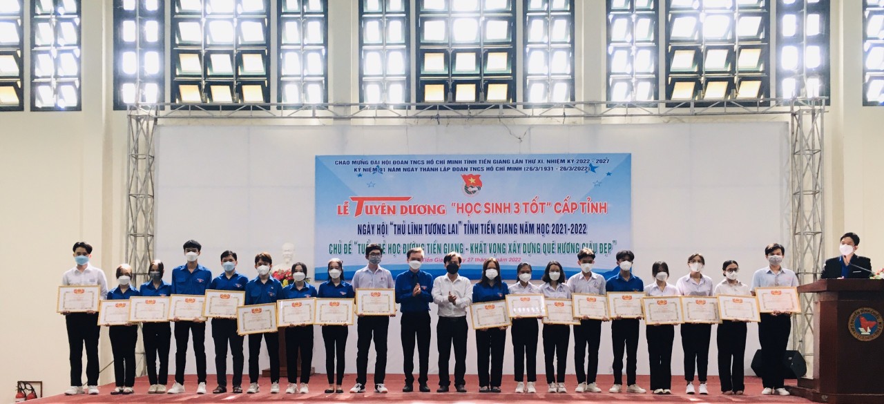 ĐTN: Ngày 27/3, tại trường THPT Nguyễn Đình Chiểu – TP. Mỹ Tho, Ban Thường vụ Tỉnh Đoàn tổ chức Ngày hội “Thủ lĩnh tương lai” với chủ đề "Tuổi trẻ học đường Tiền Giang - Khát vọng xây dựng quê hương giàu đẹp" và Tuyên dương “Học sinh 3 tốt” khối học sinh THPT tỉnh Tiền Giang năm học 2021-2022.