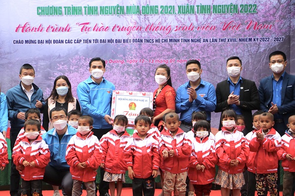 ĐTN: Ngày 12/01, Hội Sinh viên tỉnh Nghệ An tổ chức Hành trình "Tự hào truyền thống sinh viên Nghệ An", Chương trình tình nguyện Mùa đông ấm năm 2021, Xuân tình nguyện năm 2022 tại trường PTDTBT THCS Hữu Khuông, huyện Tương Dương.